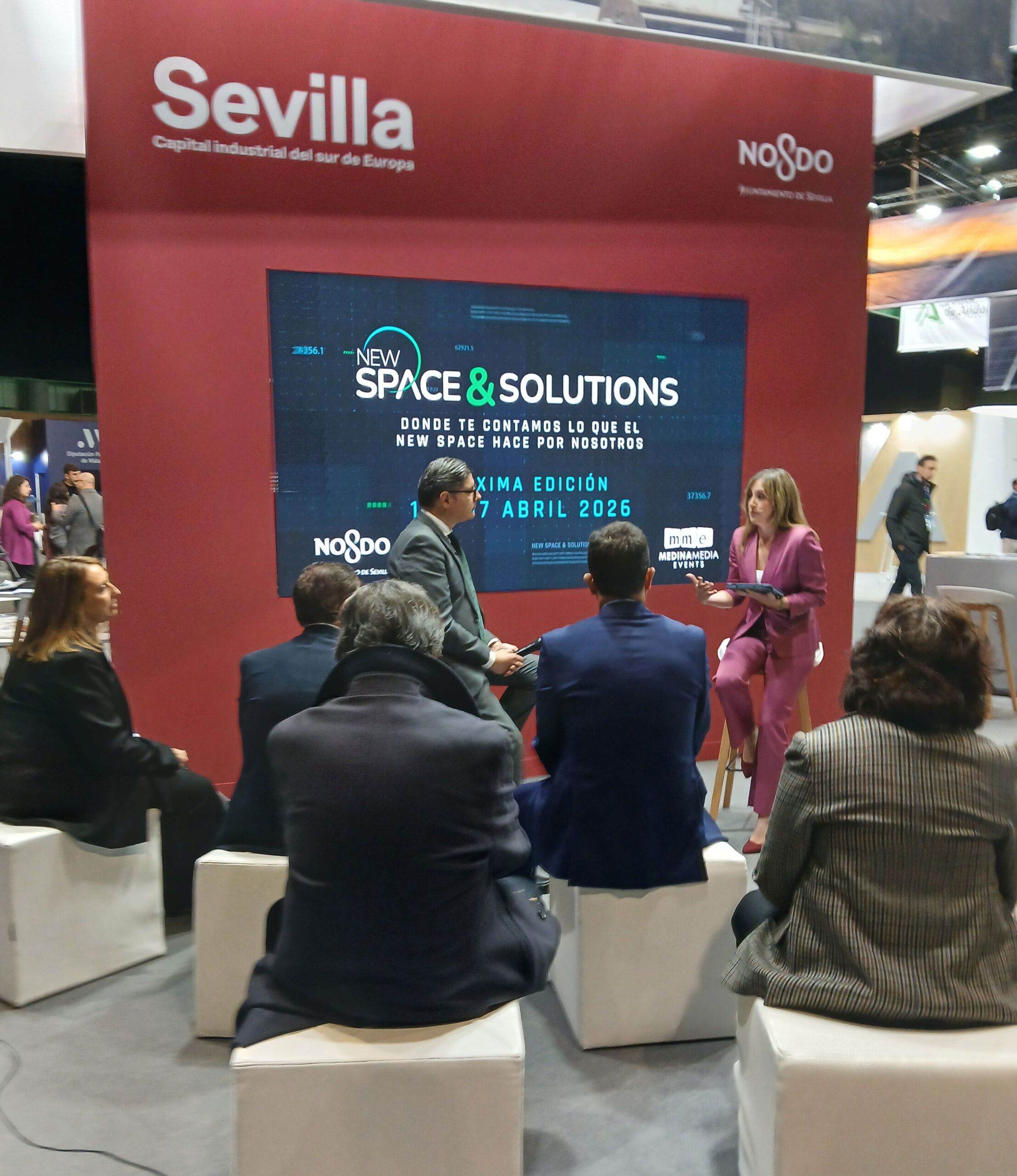 NISE Seville 2025 – ‘New Industry in Southern Europe’ – the leading international trade fair for the new green and digital industry, hosted the presentation of New Space & Solutions 2026 at the Seville City Council stand, as part of the ‘Seville, Industrial Capital of Southern Europe’ programme. This event will once again place the city at the centre of the international space ecosystem. The session, led by María Medina, Managing Director of Medina Media Events and Executive Director of Medina Media Global, opened with an interview with Álvaro Pimentel, Deputy Mayor and Councillor for Economy, who highlighted Seville’s strategic role as a technological hub and driver of the new aerospace economy.