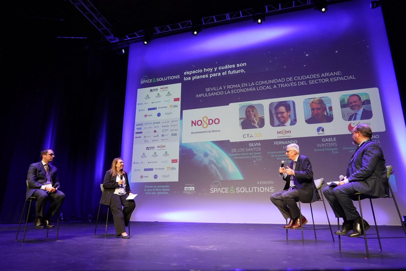 El Ayuntamiento de Sevilla protagonizó además el panel ‘Sevilla y Roma en la Comunidad de Ciudades Ariane: impulsando la economía local a través del sector espacial’, moderado por Silvia de los Santos, consultora sénior del sector aeroespacial y defensa de la Corporación Tecnológica de Andalucía (CTA).