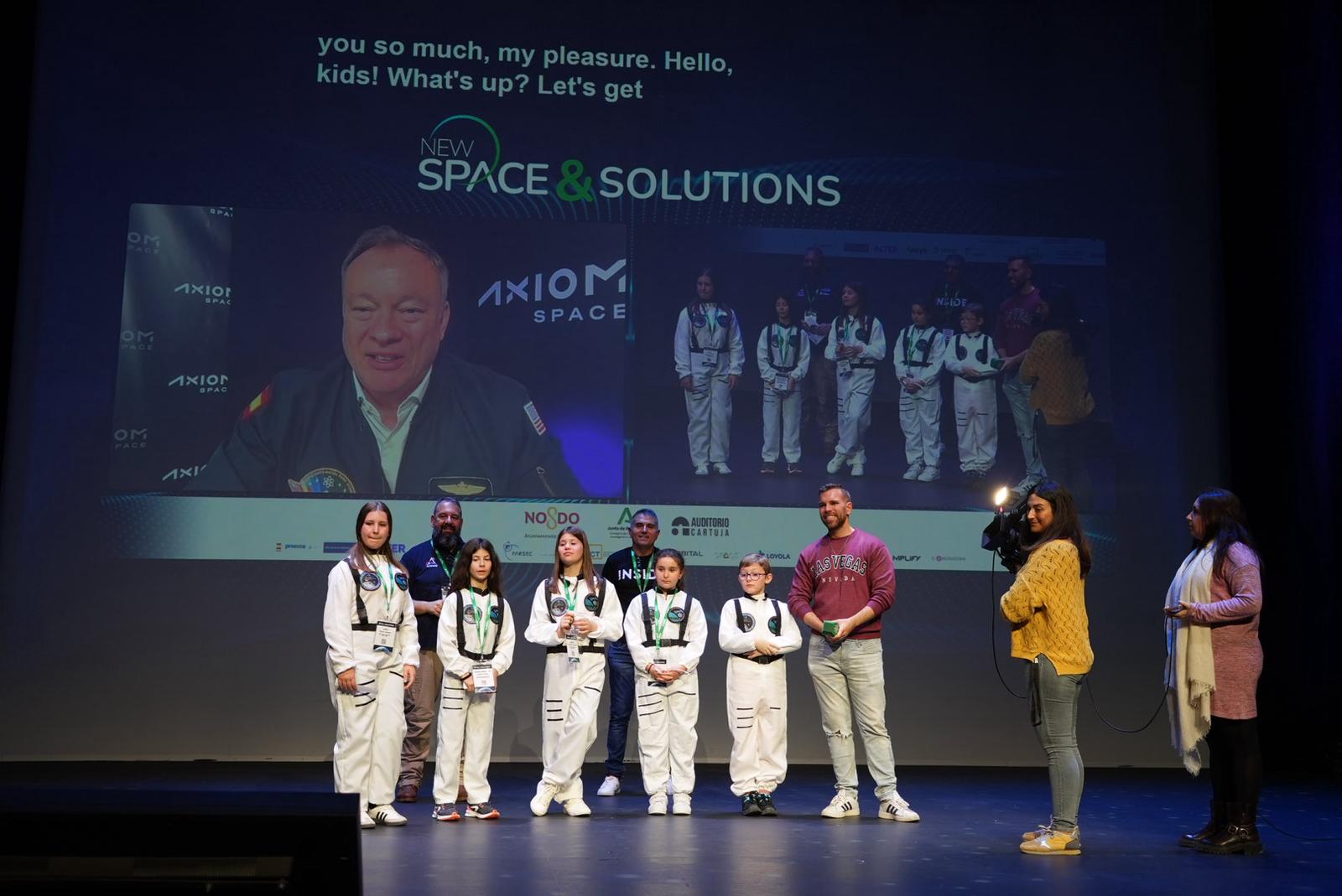 Conexión en directo con el astronauta Michael López-Alegría con la participación de los alumnos del CEIP San Ignacio del Viar de Alcalá del Río (Sevilla) durante la I edición de New Space & Solutions celebrada en marzo de 2025.